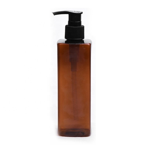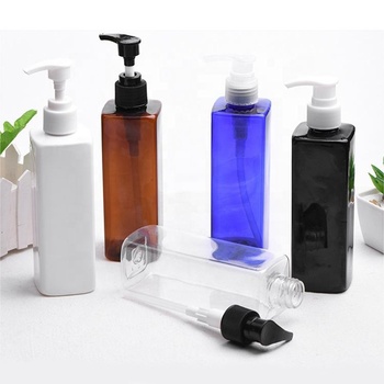 250ml square Shampoo Bottle PET Body Wash Shampoo Body Oil Bottle Flat Plastic Bottle With Pump
